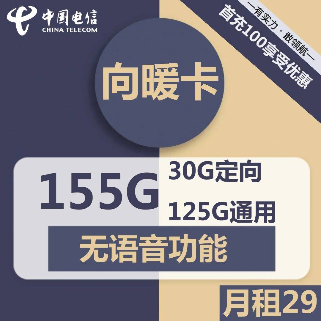 电信向暖卡29元125G通用+30G定向+无语音功能