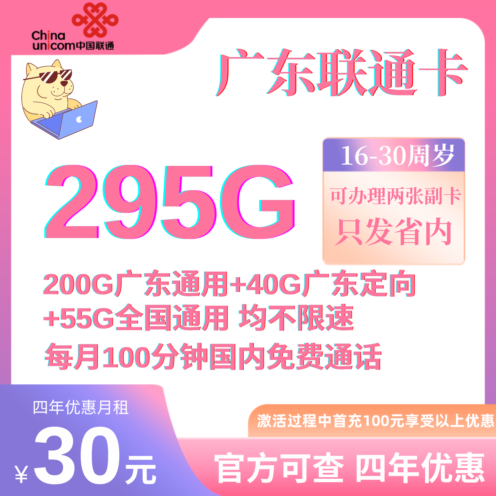 快递员/联通上门激活,在线选号,广东省内,四年套餐,16-30周岁