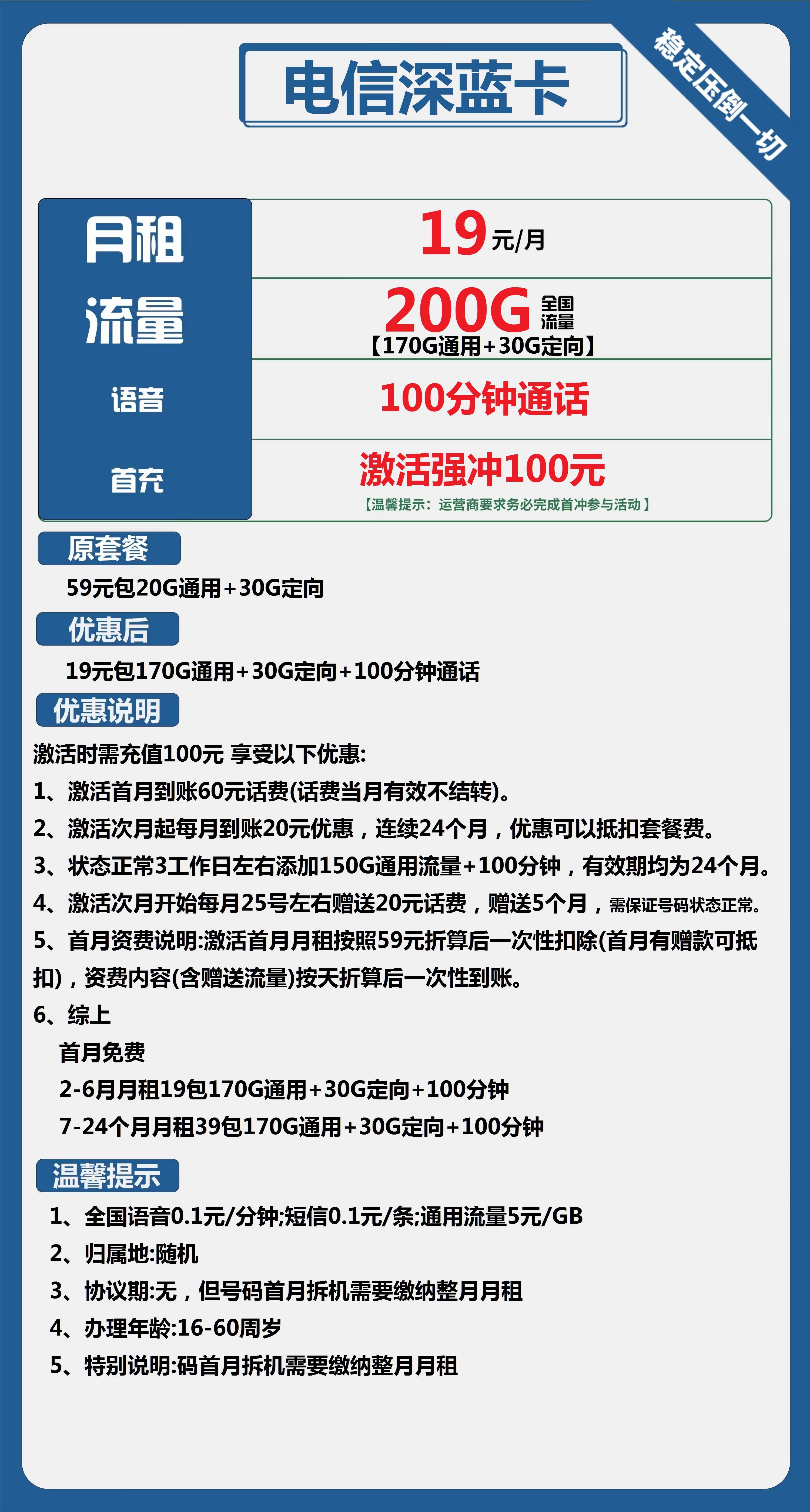 结算规则:激活当月按要求首充,次月正常在网月底出账结算