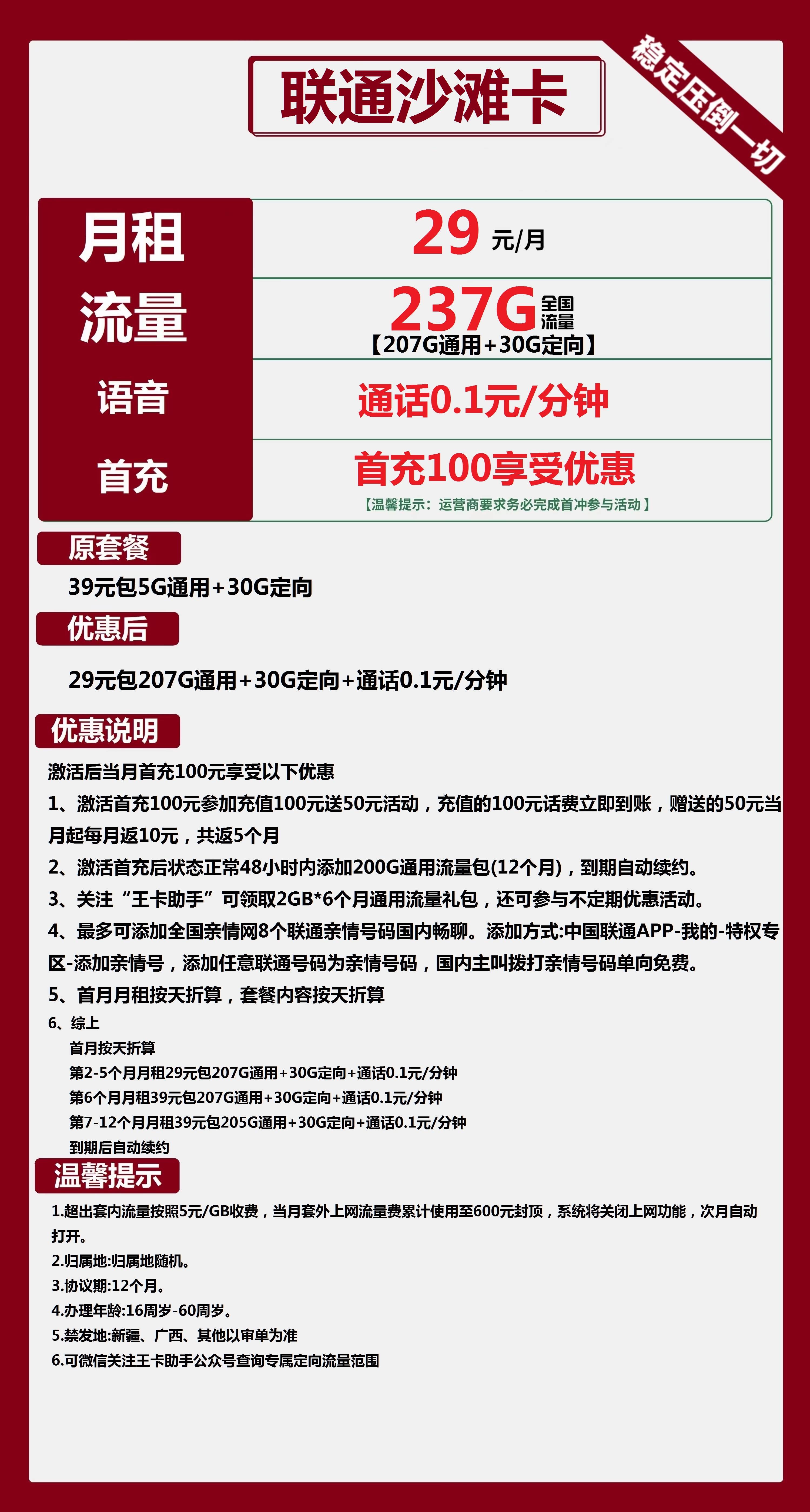 其他备注:激活首充后状态正常48小时内添加200G通用流量包(12个月),到期自动续约,但客服不可查